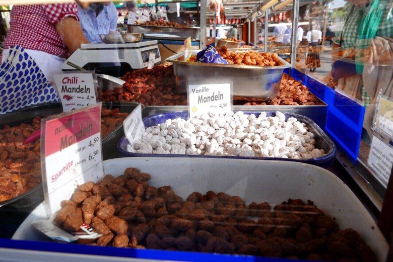 달달한 디저트, 스위츠를 즐길 수 있는 가판대도 많다. 특히 달콤한 향내에 발길이 절로 향하는 곳은 견과류를 파는 가판대. 캐러멜라이즈한 땅콩, 아몬드, 헤이즐넛, 호두 등이 반들반들 먹음직스럽다. 시럽과 초콜릿을 끼얹은 과일, 갖가지 사탕과 젤리, 패스트리를 파는 가판대도 있다.