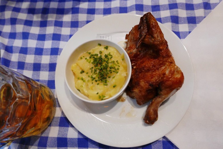 동서고금을 막론하고 , 치킨과 맥주의 궁합은 모두에게 통하는 것이었다. 옥토버페스트에서 가장 인기 있는 메뉴는 핸들Hendl, 즉 로스트 치킨이다. 살짝 양념을 해 바삭하게 구워낸 핸들은 맥주를 술술 넘어가게 한다. 텐트의 외관에서도 예상할 수 있듯, 아머Ammer는 뮌헨의 유서 깊은 치킨, 거위 구이 전문 맛집이다. 여기에선 아우구스티너 맥주를 함께 마실 수 있다.