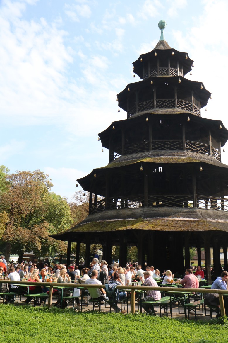 엥글리셔가르텐은 총 417헥타르(4.17제곱킬로미터/126만1천425평)에 이르는 세계적 규모를 자랑하는 공원이다. 그러다 보니 비어가든이 4개나 자리해 있다. 가장 잘 알려진 곳은 히네지셔 투름(차이니즈 타워)옆의 비어가든이다. 뮌헨에서 두번째로 큰 비어가든으로 서비스 테이블만 해도 500석, 셀프 서비스 지역엔 총 7000여 석이 마련되어 있다. 슈바이네학센, 슈텔케를피쉬, 렌들 등 전형적인 음식과 호프브로이 맥주를 즐길 수 있다. 만약 7월에 찾는다면 특별한 이벤트를 기대해도 좋다. 19세기 이곳에선 매년 귀족들의 요리사, 하인들이 모여 ‘코허발Kochball’이란 사교 파티를 열었는데, 참여하는 사람들은 달라졌지만 그 전통을 지키고 있다. 7월 3번째주 일요일 오전 5시 30분부터 10시까지 열리며 당시의 복장 및 바이에른 전통 의상을 입은 이들이 북적거리며 시간 여행을 하게 된다. 또 이곳은 겨울에 찾아도 좋다. 크리스마스 마켓이 열리기 때문이다.