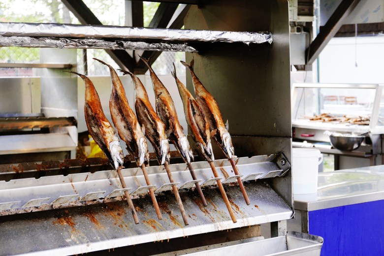 이곳을 더욱 찾게 되는 이유가 또 하나 있는데, 피셔 프로니Fischer-Vroni의 슈텍케를피쉬Steckerlfisch 때문이다. 길다란 막대기에 생선을 꽂아 불 위에 통째로 구운 것으로 바이에른 남부, 오스트리아 북부의 별미다. 여기에 근처 로트크로이츠플라츠Rotkreuzplatz의 갈레리아 백화점 지하 식품관에서 구입한 핸들Händl(혹은 브라트핸들, 치킨구이), 슈바이네바우흐Schweinebauch(혹슨 크누스프리거 슈바이네바우흐 Knuspriger schweinebauch, 삼겹살 구이), 학센Haxen, 근처 시장에서 산 싱싱한 채소 들을 곁들여 먹는다. 맥주가 술술~ 넘어간다.