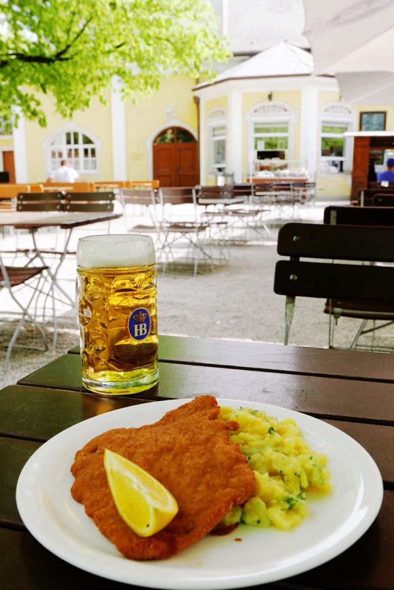 원하는 비어가르텐을 골랐다면 이제 맥주에 곁들일 음식을 결정해야 한다. 여행자라면 바이에른의 전통 음식들을 맛보고 싶을텐데, 비어가르텐에서도 즐길 수 있다. 1897년 비어가르텐은 다시 음식을 팔 수 있는 허가를 얻었다. 물론 바이에른 비어가든 조례Bayerische Biergartenverordnung에 따라, 원칙적으로 집에서 챙겨오는 음식은 반입 가능하다. 단, 주의해야 할 점이 있다. 비어가르텐에서도 테이블 보가 깔린 곳은 ‘음식 서비스’를 하는 곳이다. 즉, 이곳에서 챙겨 온 음식을 먹는 것은 실례다. 외부 음식을 가져 온다면 테이블 보가 없는 길고 넓직한 테이블에 앉으면 된다. 그리고 맥주를 비롯한 다른 음식들은 셀프 서비스로 즐긴다.