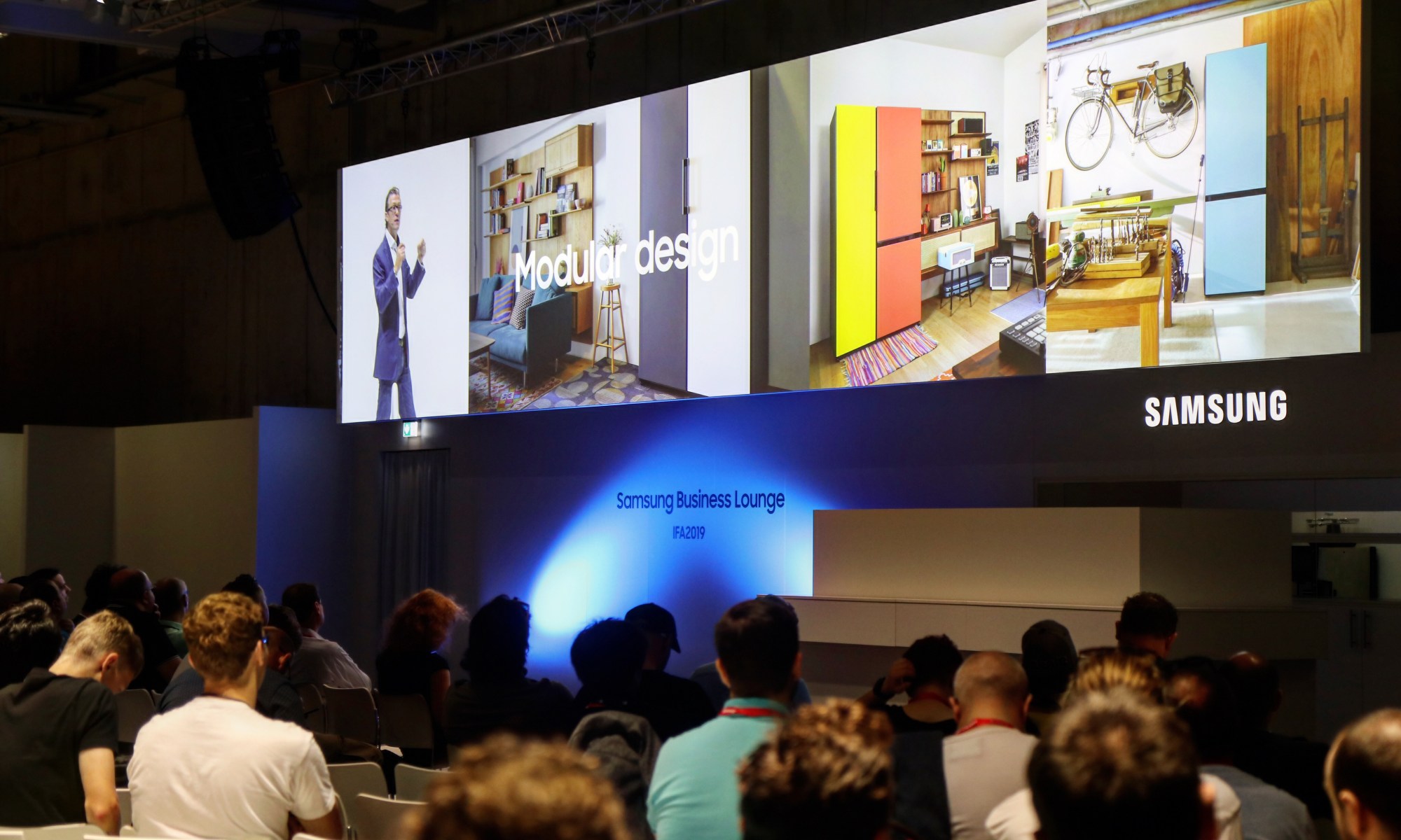 삼성은 약 3800평 규모의 단독 전시부스 ‘시티큐브 베를린’에 ‘삼성타운’을 조성했다. 삼성타운 중앙은 6 개의 라이프스타일 존으로 구성됐다. 여기에 AI 플랫폼인 빅스비, 스마트홈 애플리케이션 ‘스마트싱스’와 다양한 가전 제품 및 기기를 연동해 ‘커넥티드 리빙’의 모범 답안을 보여줬다. 앞서 소개한 삼성 주방 이 일례로, 고도의 AI 기술을 접목한 패밀리허브 냉장고와 곳곳에 설치한 공기 질 센서를 확인해 실내 공기를 관리하는 삼성봇에어, 공간 인지센서로 실내 구석구석 청소하는 삼성봇클린의 조합을 통해 좀더 똑똑하고 편리한 삶을 그려냈다.