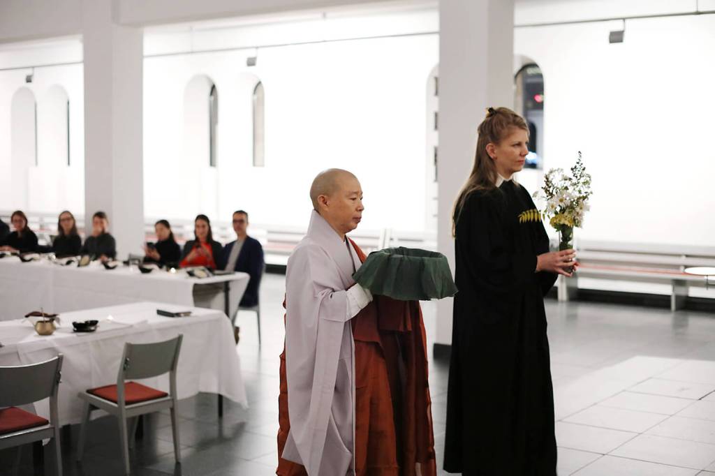 11월 8일, 과거 베를린 장벽이 드리워져있던 포츠다머 플라츠의 성 마테우스 교회에서 정관 스님의 ‘화합의 만찬’이 열렸다. 본 행사는 지난 5월 개장한 예술 정원 프로젝트 <제 3의 자연>의 연계 행사다. 한반도 남북의 꽃으로 백두대간을 재현한 예술 정원 <제 3의 자연>은 베를린 장벽 붕괴 30주년을 맞아 기획된 공공예술 프로젝트다. 금아트프로젝트, 현대 미술과 생태학적 결합을 고민해 온 한석현, 김승회 작가는 정원을 통해 자연 속에서 사라지는 경계를 이야기한다. 정원이 개장한 5월 23일부터 11월 15일까지 ‘경계’ ‘화합’ ‘유토피아’를 테마로 한 다양한 프로그램을 진행해왔다. 한식 문화 창작 콜렉티브 크레잇터스(crEATors)가 함께 주최한 ‘화합의 만찬’은 그중 하이라이트로 손꼽힌다.