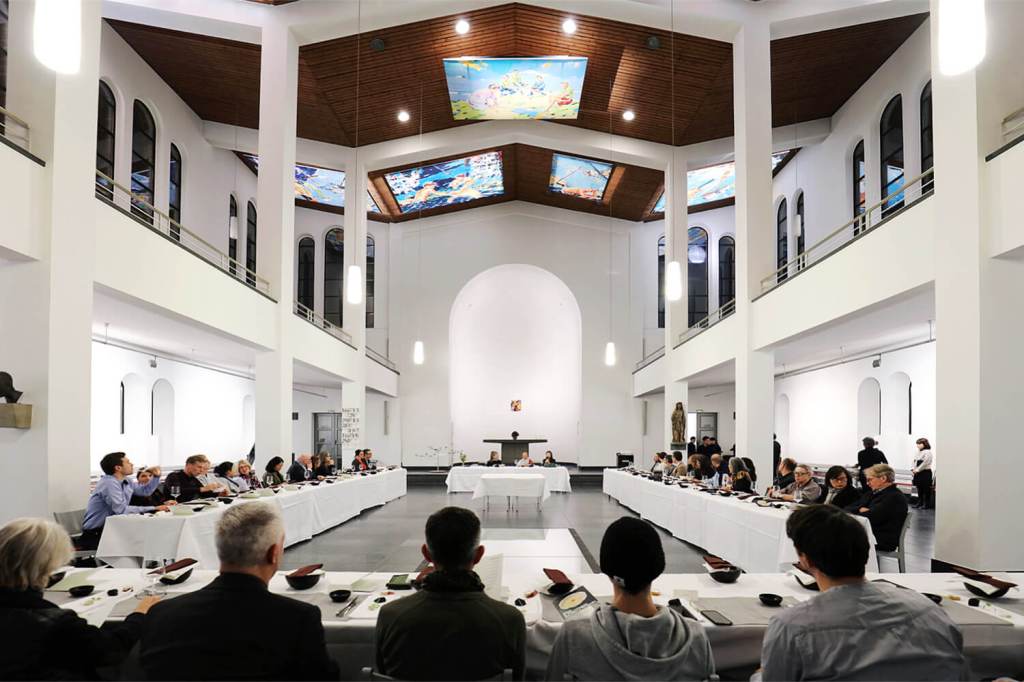 화합의 만찬은 베를린 프렌츨라우어베르크 북부 지역 기독교 연합회의 알무트 벨만 목사와 정관 스님이 기독교와 불교의 제례를 혼합한 양식으로 함께 진행됐다. 벨만 목사가 속한 프렌츨라우어베르크 북부 지역 기독교 연합회는 통일 전 동독의 평화 시민 혁명을 지원한 단체로 더욱 의미가 깊다. 또한 성 마테우스 교회에는 옛 동독 출신의 아티스트 노르베르트 비스키(Norbert Bisky)의 작품이 전시되고 있었다. 한국에도 여러번 소개된 적있는 작가로 베를린 장벽 붕괴 전후의 역사와 기억을 담은 작품세계로 주목받았다.