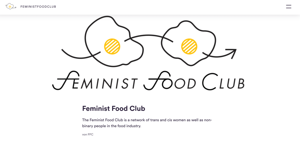 페미니스트 푸드 클럽(Feminist Food Club)은 2017년 유명 블로거 마리 셰르페(Mary Scherpe)와 디자이너 루트 바르틀렛(Ruth Bartlett)에 의해 시작된 커뮤니티다. 이름에서 알 수 있듯, 요식업계에 종사하는 여성들의 모임이다. 남성 중심적인 요식업계에서 여성 간의 네트워크를 구축, 강화하고 집단 지식을 확장함으로써 여성의 권리와 안전을 지키고 성차별적 시스템 해체에 그 목적을 둔다. 주목할 점은 지정 성별과 성 정체성이 일치하는 ‘시스젠더’ 여성은 물론 일치하지 않는 ‘트랜스젠더 여성’ 또한 포함한다는 것. 이분법적 성별 개념을 벗어나 다양한 성 정체성을 인정하고 모두의 성 평등을 지지한다. 페미니스트 푸드 클럽은 매달 모임을 통해 돈독한 네트워크를 다져왔으며 코로나19 이후 온라인으로 더욱 활발하게 교류하고 있다. 코로나19로 인한 요식업계의 위기에 대한 의견을 나누고 디지털화, 홍보와 마케팅, 호스피탈리티 등 전문가들이 새로운 전략 모색과 함께 인사이트 공유를 돕는 등 적극적 활동이 돋보인다.