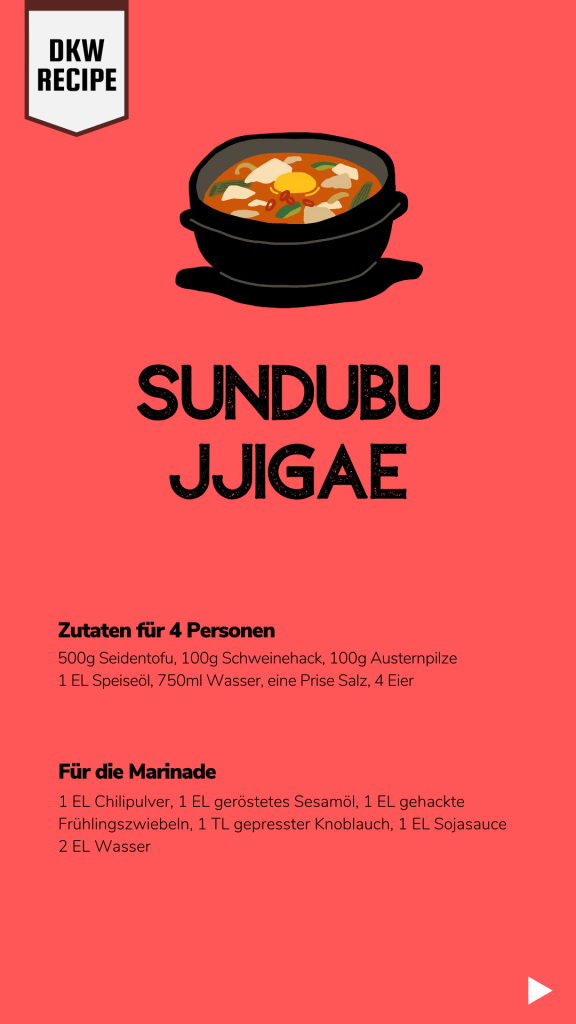 Sundubu Jjigae ist neben Kimchi Jjigae und Doenjang Jjigae einer der Top 3 der begehrtesten koreanischen Eintöpfe. („Jjigae“ bedeutet Eintopf auf Koreanisch.)