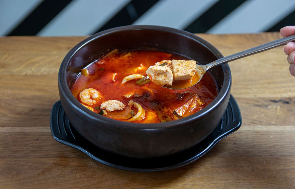 Sundubu jjigae ist ein koreanischer Eintopf mit weichem (ungegeronnenem) Tofu als Highlight-Zutat. Es gibt verschiedene Möglichkeiten, Sundubu Jjigae mit verschiedenen Zutaten zuzubereiten, z.B. Kimchi, Schweinehackfleisch und Meeresfrüchte.