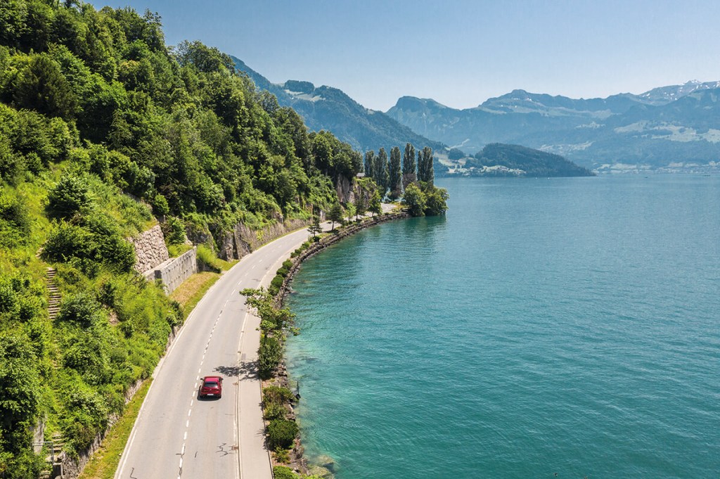 해발 약 2,500m의 알프스 고개를 굽이굽이 넘는 것도 짜릿하지만, 알프스의 속살을 탐험하는 루트는 다채로운 경험을 안겨준다. 스위스 최고의 호숫가 드라이브 코스가 있는 루체른 호수가 대표적이다. 눈부신 에메랄드빛 호수를 따라 리기산 기슭의 사랑스러운 휴양지인 베기스(Weggis)와 피츠나우(Vitznau)를 지나 자동차를 싣는 베켄리트(Beckenried)행 오토 페리에 오른다. 오토 페리는 호수를 가로지르며 루체른 지역의 명산인 리기산과 필라투스산의 파노라마를 보여준다. 베켄리트에 내리면 오드리 헵번이 결혼식을 치렀던 뷔르겐슈톡(Bürgenstock)산으로 향한다. 이곳에서 눈앞에 펼쳐지는 루체른 호수의 정취를 만끽해보길.