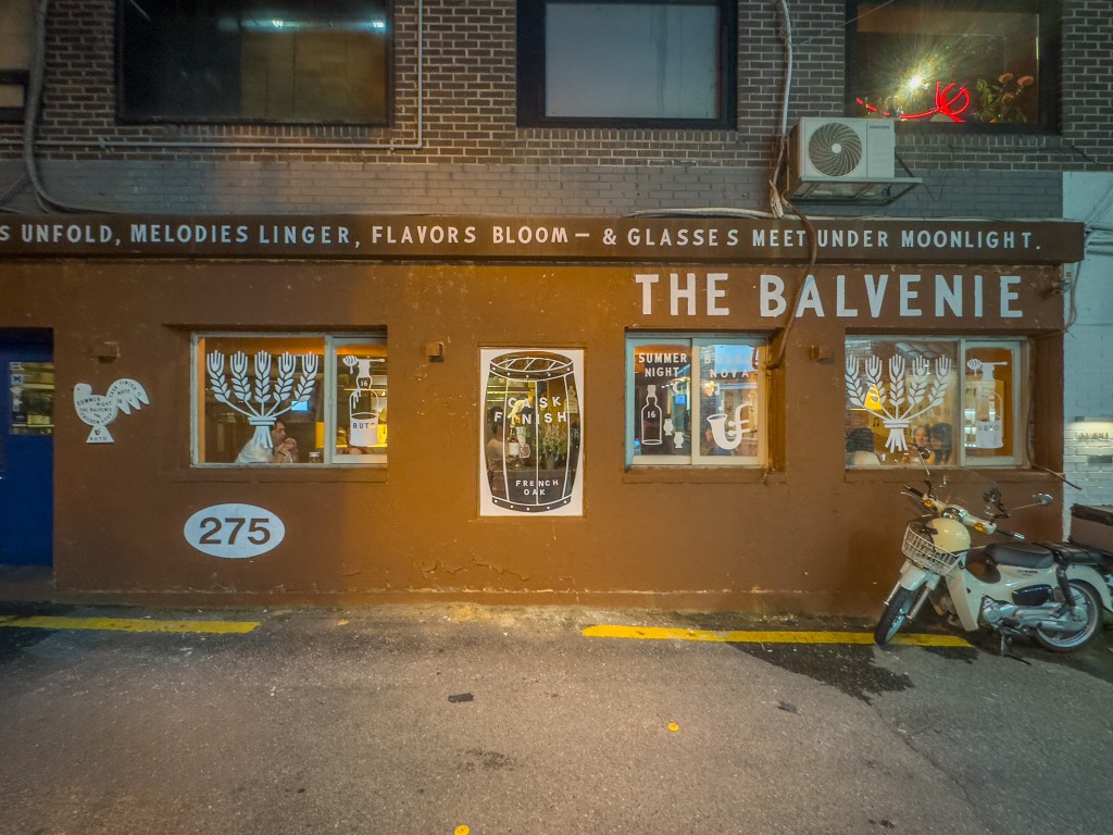 그리고 발베니 프렌치오크 16! 처음 맛보는데 위스키가 이렇게 화사하고 향기로운 맛을 낼 수 있다니. 위알못이라 감히 평하긴 어렵지만, 위스키하면 떠올리는 묵직함보다 산뜻함과 경쾌함 여기에 깊이감이 함께 느껴져 신선했어요. 클래식 수트에 위트있는 스니커즈를 신은 사람의 이미지가 그려지는, 서울과 잘 어울리는 위스키라고 느껴졌어요. 그래서 또 한잔 홀짝 홀짝, 좋아하는 최애 메뉴까지 더 시켜서 주방 마감할 때까지 먹고 왔죠.