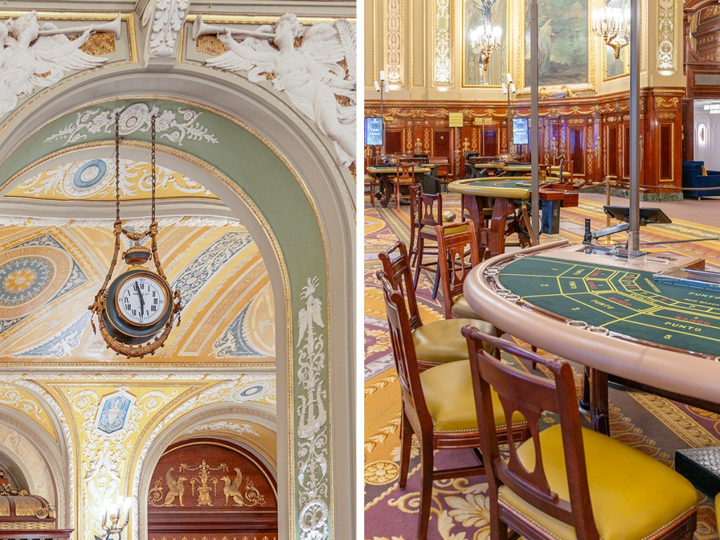 이 카지노는 건축적으로 극장형 구조를 가진다. 사람이 주인공이고, 무대는 도박 테이블이다. 벽과 천장의 프레스코화는 ‘운명(Fortuna)’과 ‘행운(Chance)’을 의인화한 여신의 모습음 담았는데, 도박이 가진 불안과 기대를 동시에 표현한다.