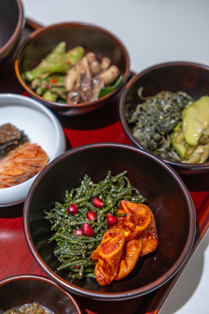 As the courses arrived one by one, a particular plate made me gasp. It was a bed of deep green Tot (a type of sea vegetable), sprinkled with bright red pomegranate seeds and crushed chili flakes.